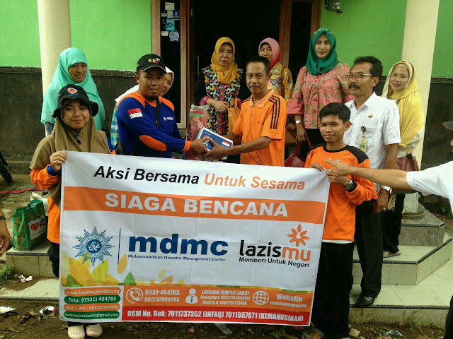 | mdmc dan lazismu jember menyerahkan bantuan sembako korban terdampak bencana |